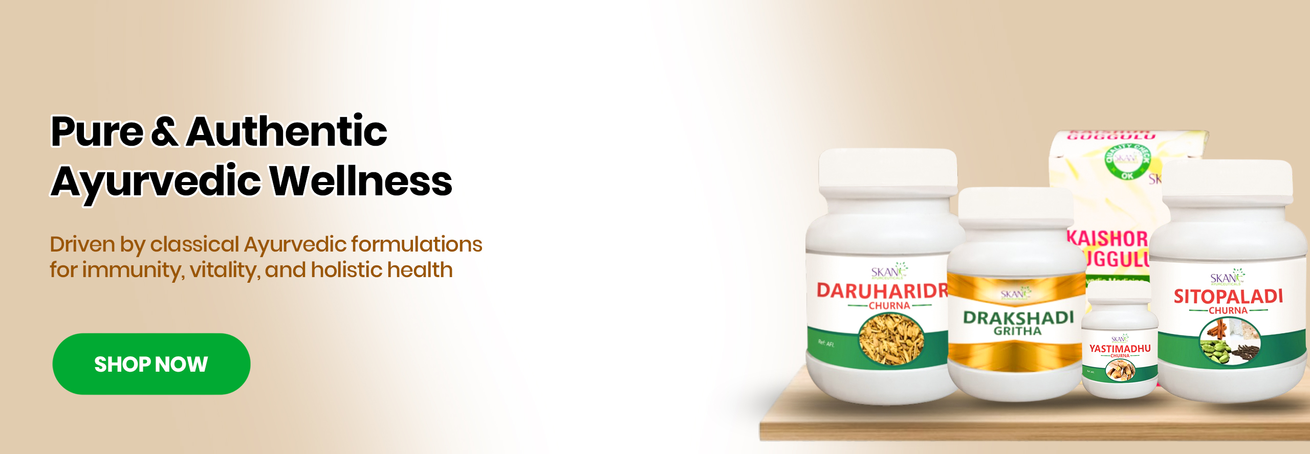 Founded in 2018 by Dr. Morusupalli Dilip, SKAN AYURCEUTICALS PVT. LTD. is committed to manufacturing ancient, research-driven Ayurvedic medicines rooted in classical doctrines and time-tested therapeutic principles. Under the expert leadership of Managing Director Dr. Morusupalli Ramavani, the company maintains the highest standards of ethical production, formulation accuracy, continuous scientific research, and rigorous quality assurance. With a strong foundation in GMP-certified manufacturing and in-house R&D, SKAN delivers safe, effective, and sustainable healthcare solutions designed to support long-term wellness and holistic healing.